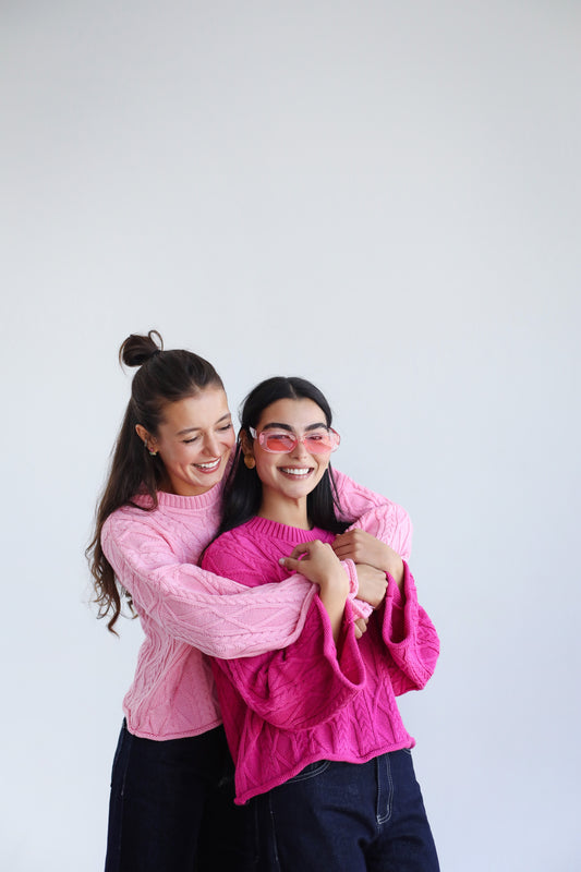 Heartwarming Cable Sweater in Pink