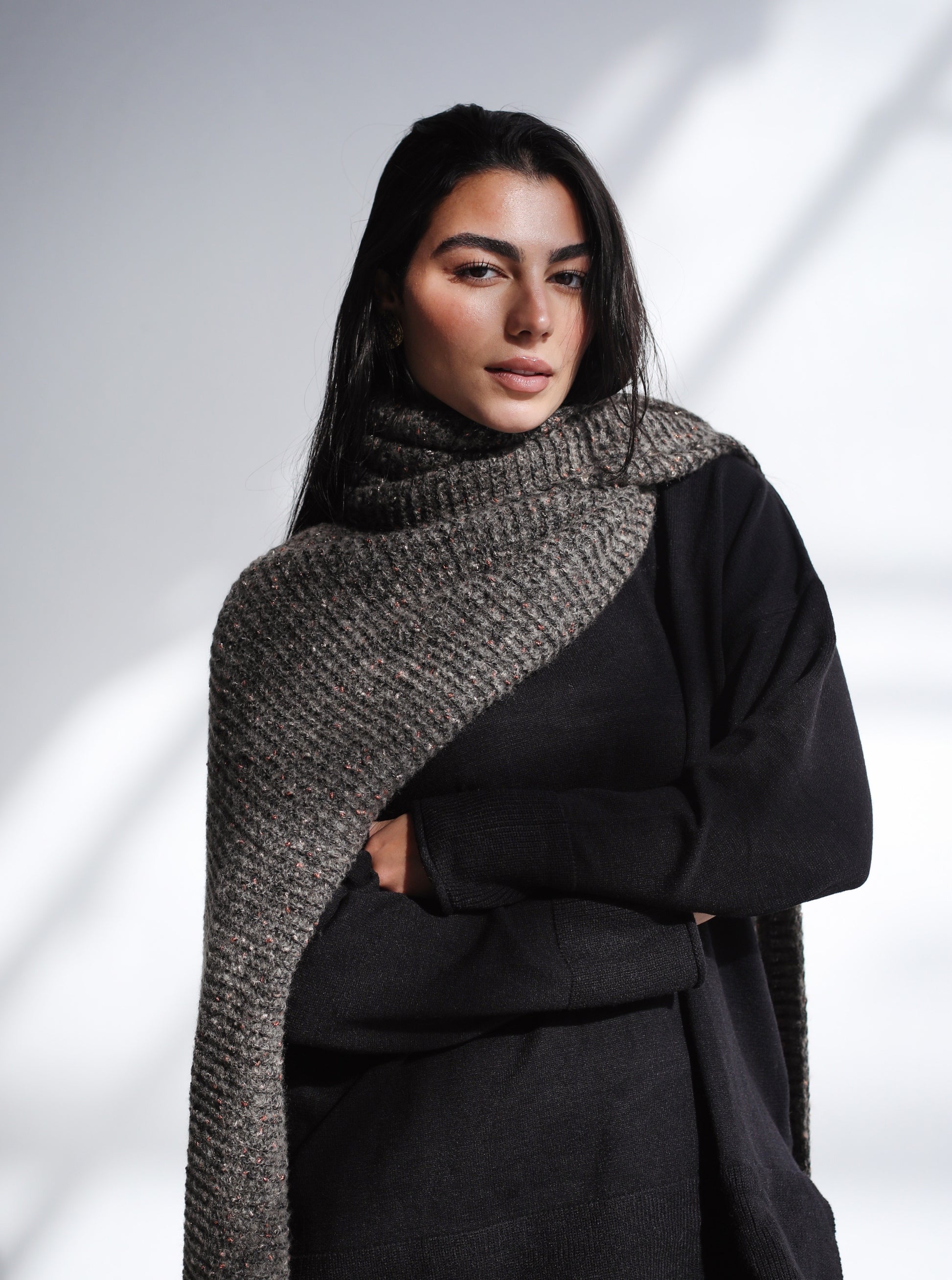 Winter Chill Knit Scarf - Charcoal Taupe