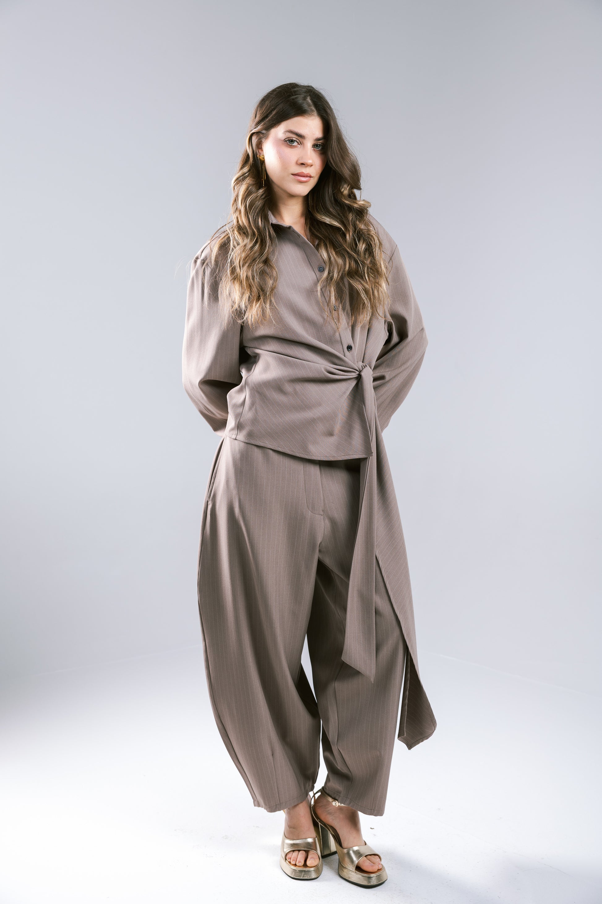 Knot Your Type Striped Set - Taupe