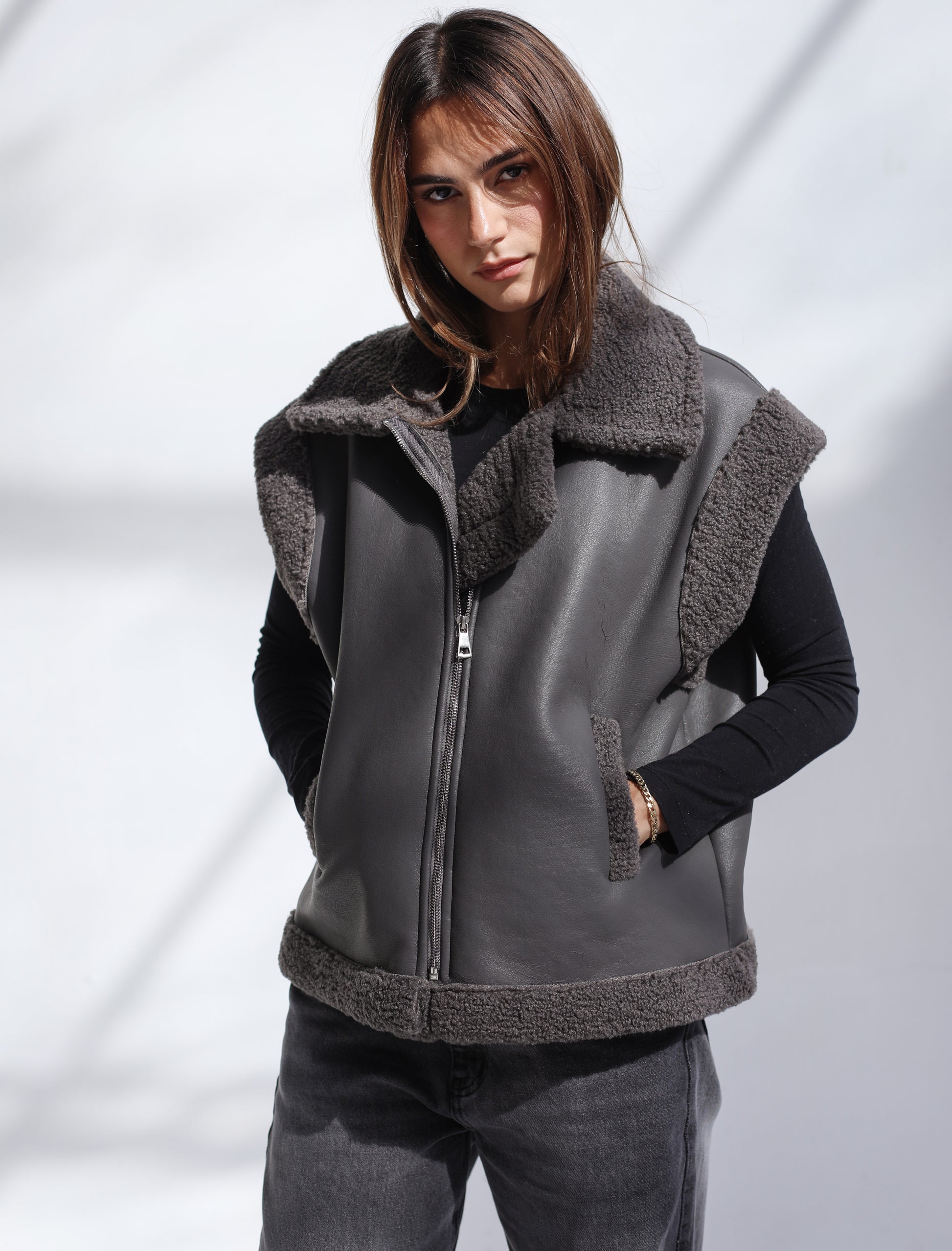 Snowflakes Leather Vest - Grey