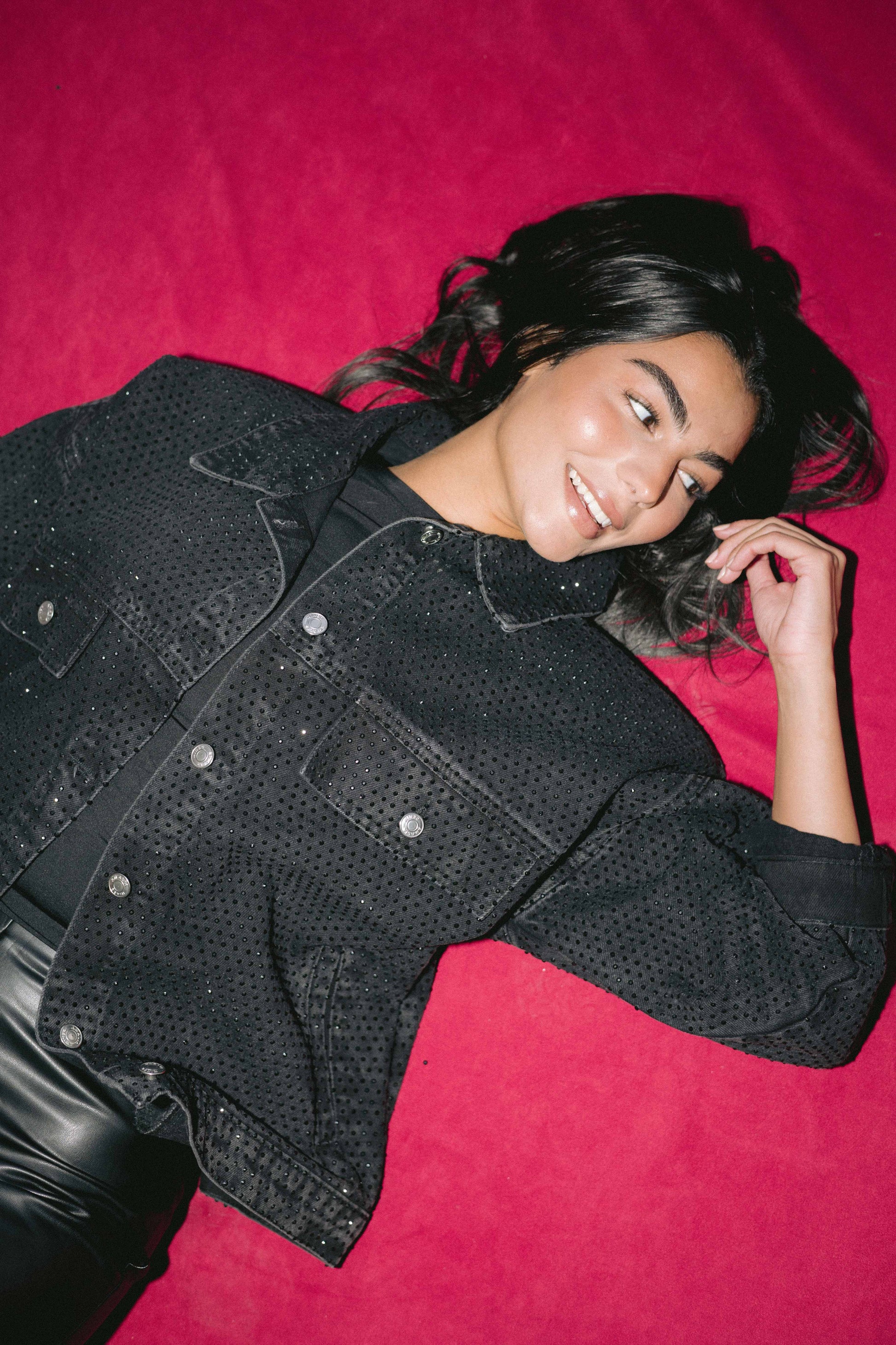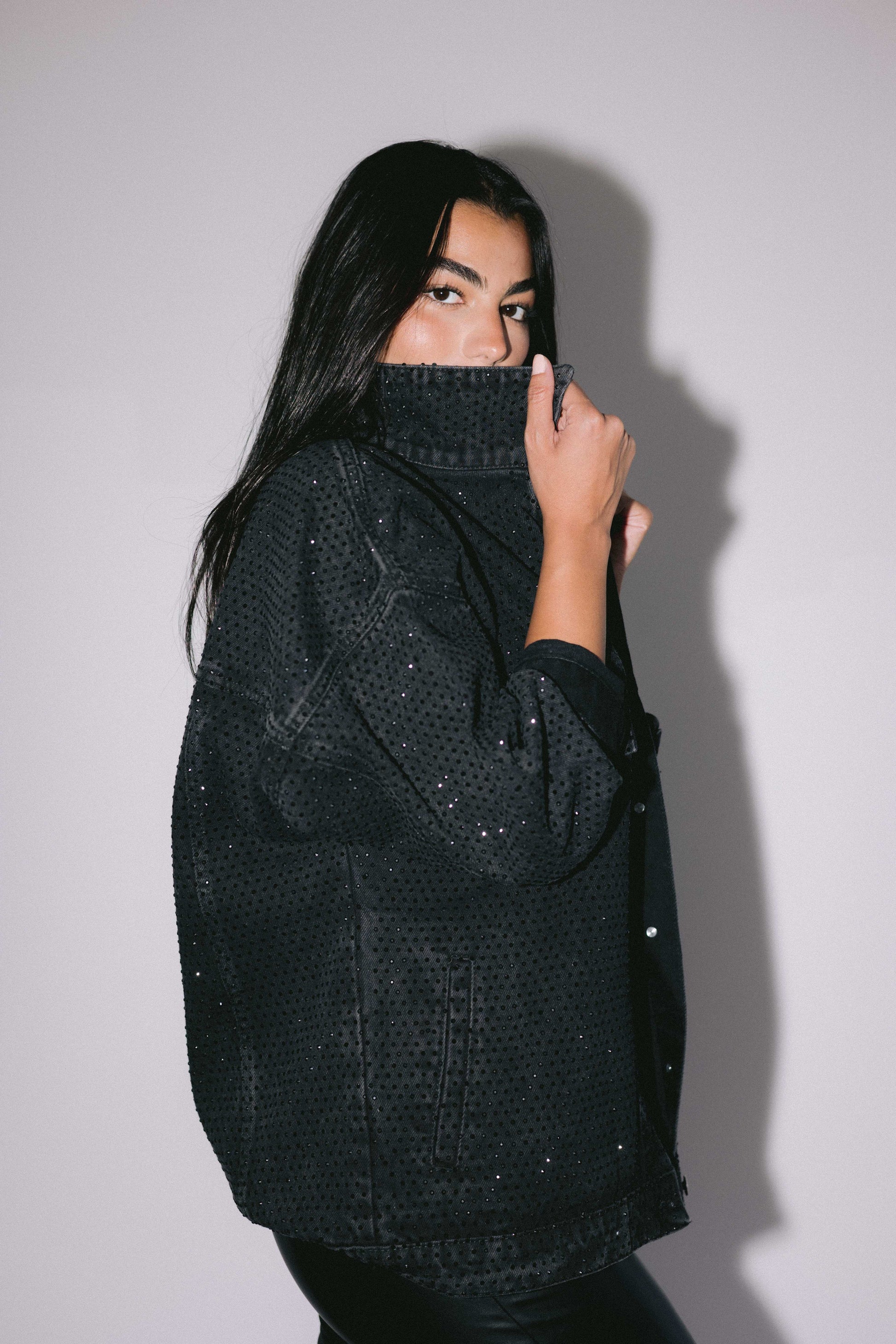 A bold twist on a timeless classic. This denim jacket is detailed with metallic studs that bring a rebellious edge to your everyday look, with a slightly oversized fit for effortless layering. Perfect for pairing with everything from casual tees to flirty dresses — this jacket adds instant attitude to any outfit.