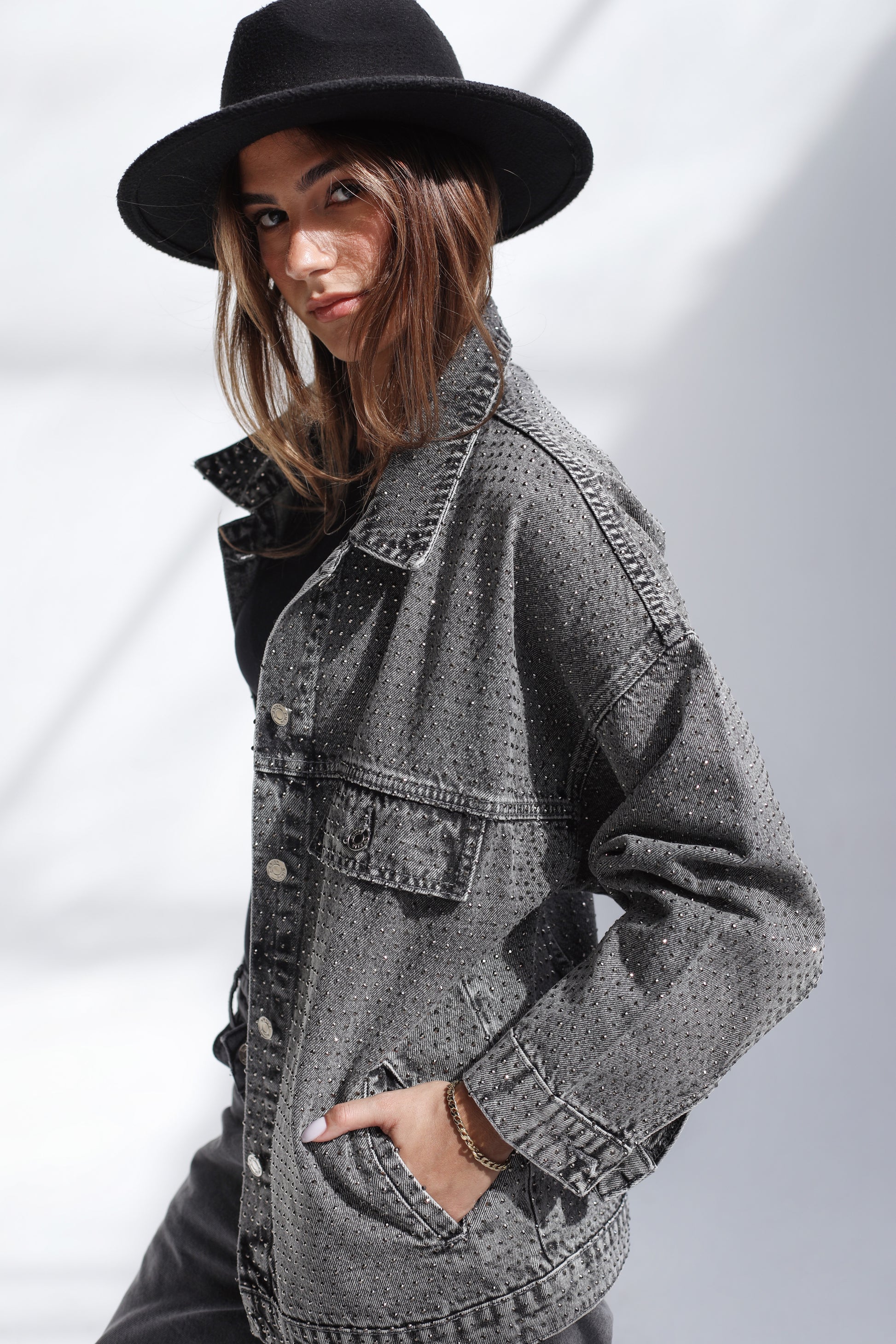 A bold twist on a timeless classic. This denim jacket is detailed with metallic studs that bring a rebellious edge to your everyday look, with a slightly oversized fit for effortless layering. Perfect for pairing with everything from casual tees to flirty dresses — this jacket adds instant attitude to any outfit.